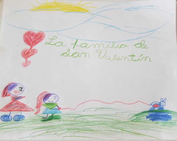 Como todo momento es bueno para alguna lección de vida, le pedí a mi hija que hiciera un dibujo que representara a nuestra familia en San Valentín. Aquí se los comparto: Pepe, ella y yo. Me parece que es un dibujo muy lindo y representativo de nuestro amor. Ese amor que damos cada día a nuestra familia, amigos, compañeros… Pequeños gigantes que irradian luz en nuestros corazones.