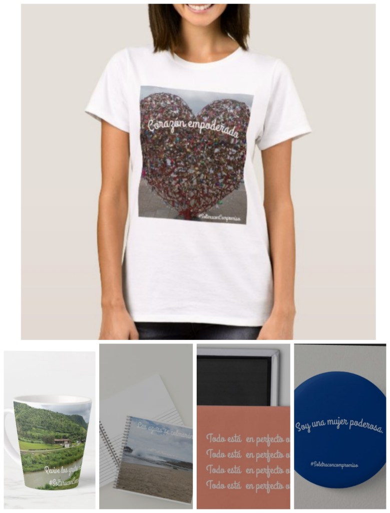 Yo, emulando a estas mujeres emprendedoras, he decidido seguir su ejemplo. Voy a sumar algo más a la lista de cosas que hago. Por eso he comenzado el nuevo proyecto de una tienda en línea con variedad de productos diseñados por #SolteraconComprmiso e inspirado en mujeres extraordinarias como ustedes. La idea es ofrecer una serie de artículos con frases de empoderamiento femenino a raíz del libro Soltera con Compromiso y mi segmento de radio en el Happy Hour de Fidelity, en el que comparto experiencias, información educativa de interés y recomendaciones para afrontar la ardua tarea y las aventuras de una familia monoparental.